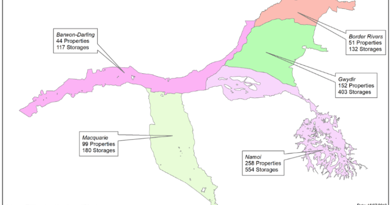 As this map shows, there are 99 properties and 180 storages being assessed for floodplain harvesting in the Macquarie.