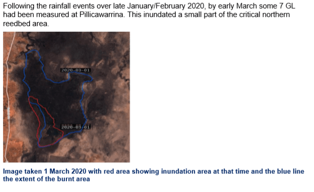 The rains in February 2020 came just in time to provide relief to the burnt North Marsh reed bed – however some fumbling in NSW agencies meant that the first flows weren’t protected for the environment, and significant volumes of water were allowed to be pumped and diverted from the river.